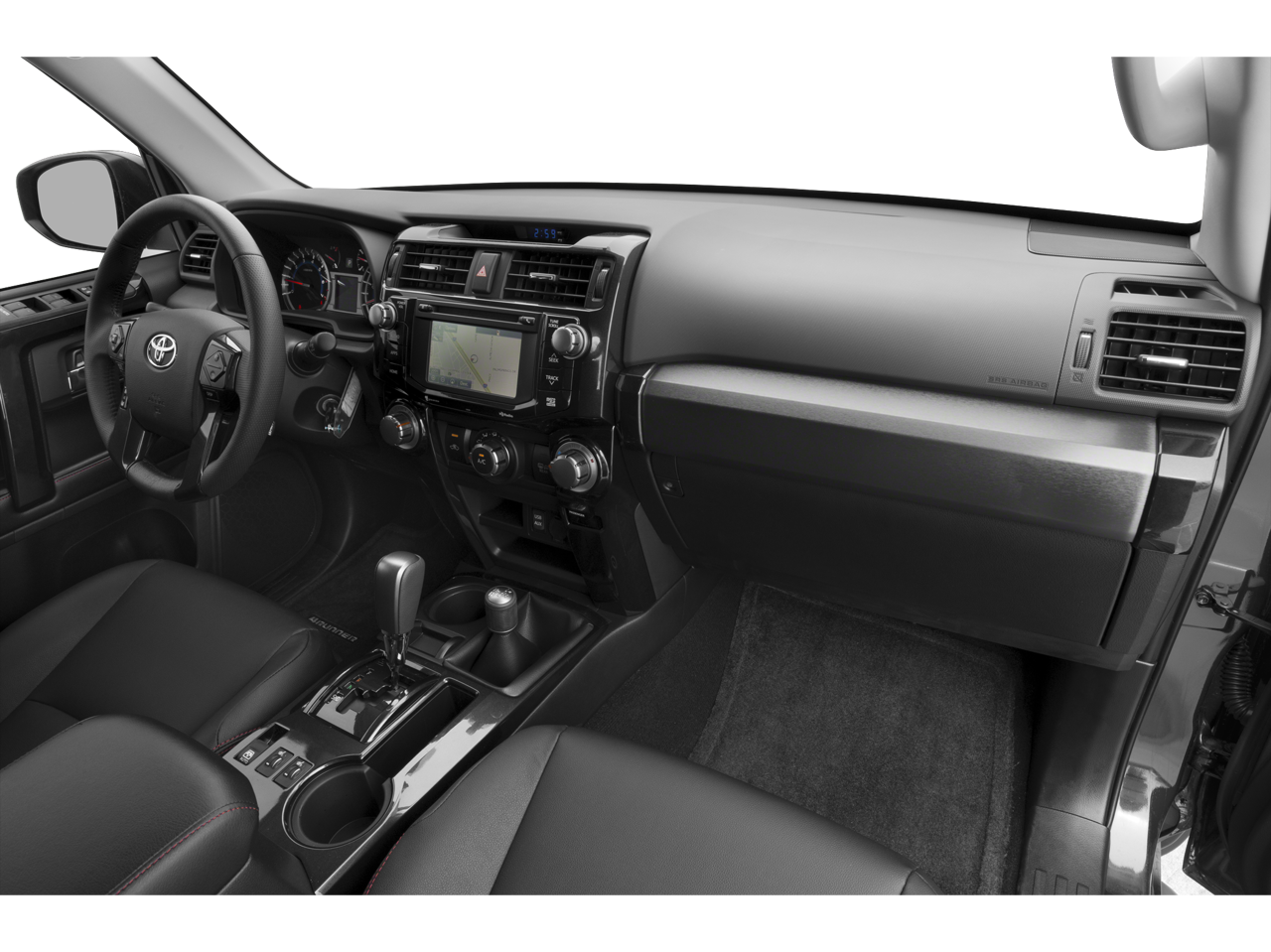 4WD, Black Graphite w/Fabric Seat Trim, 3.727 Axle Ratio, 4-Wheel Disc Brakes, 8 Speakers, ABS brakes, Air Conditioning, Alloy wheels, AM/FM radio: SiriusXM, Anti-whiplash front head restraints, Black Roof Rails, Brake assist, Bumpers: body-color, CD player, Compass, Driver door bin, Driver vanity mirror, Dual front impact airbags, Dual front side impact airbags, Electronic Stability Control, Emergency communication system: Safety Connect, Exterior Parking Camera Rear, Fabric Seat Trim, Front anti-roll bar, Front Bucket Seats, Front Center Armrest, Front fog lights, Front reading lights, Front wheel independent suspension, Heated door mirrors, Illuminated entry, Knee airbag, Leather Shift Knob, Low tire pressure warning, Occupant sensing airbag, Outside temperature display, Overhead airbag, Overhead console, Panic alarm, Passenger door bin, Passenger vanity mirror, Power door mirrors, Power driver seat, Power steering, Power windows, Radio: Entune Audio Plus, Rear anti-roll bar, Rear seat center armrest, Rear window defroster, Rear window wiper, Remote keyless entry, Roof rack: rails only, Security system, Speed control, Speed-sensing steering, Split folding rear seat, Spoiler, Steering wheel mounted audio controls, Tachometer, Telescoping steering wheel, Tilt steering wheel, Traction control, Trip computer, Variably intermittent wipers, and Wheels: 17 x 7.5 7-Spoke Unique Off-Road Alloy.