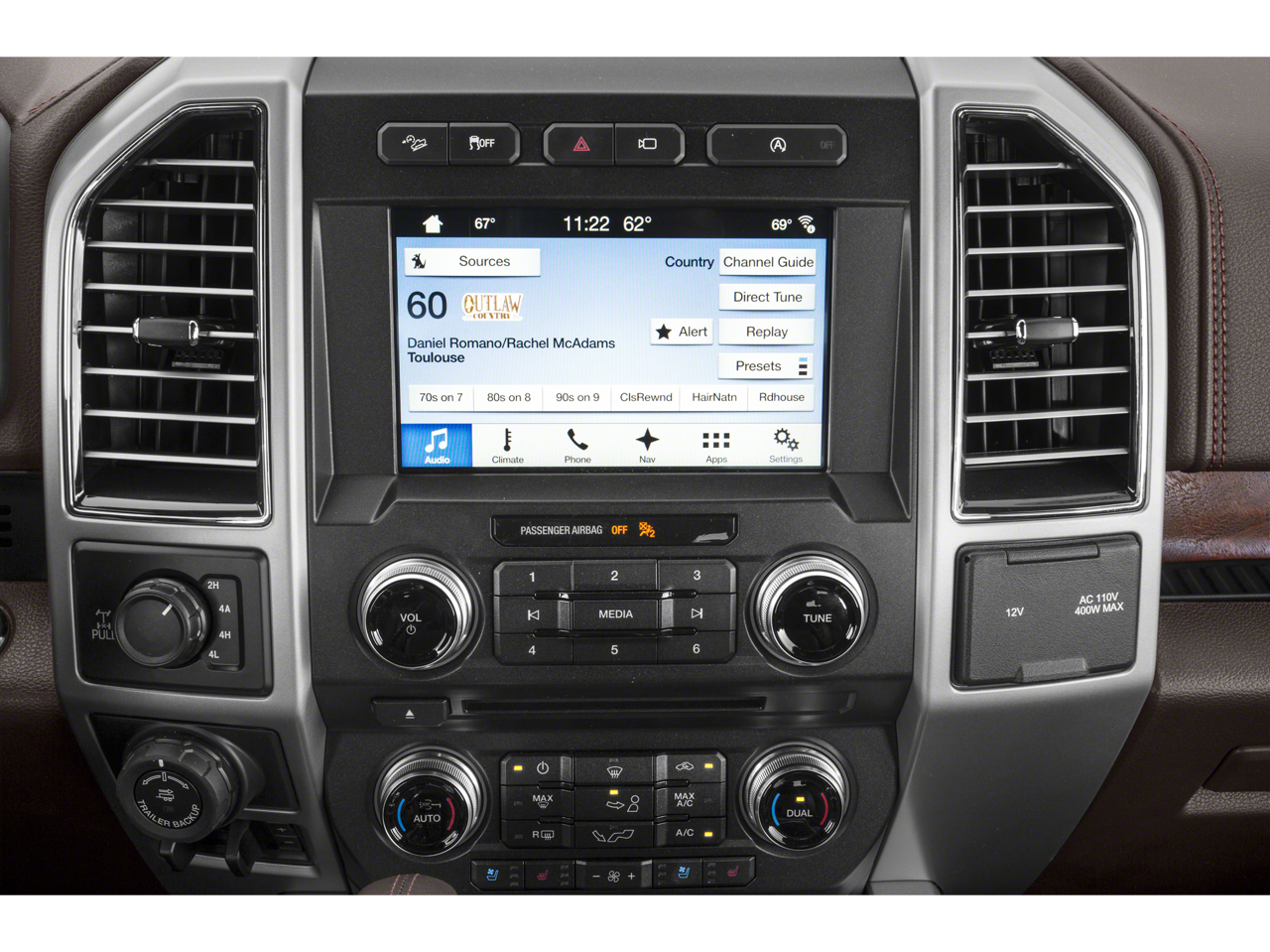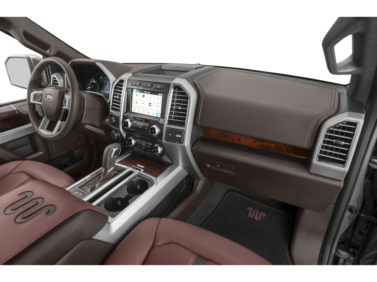 GVWR: 7,050 lbs Payload Package, 4WD, 10 Speakers, 18 Machined-Aluminum Wheels, 3.31 Axle Ratio, 4-Wheel Disc Brakes, ABS brakes, Adjustable pedals, Air Conditioning, Alloy wheels, AM/FM radio: SiriusXM, Auto High-beam Headlights, Auto tilt-away steering wheel, Auto-dimming door mirrors, Auto-dimming Rear-View mirror, Automatic temperature control, Brake assist, Class IV Trailer Hitch Receiver, Compass, Delay-off headlights, Driver door bin, Driver vanity mirror, Dual front impact airbags, Dual front side impact airbags, Electronic Stability Control, Emergency communication system: SYNC 3 911 Assist, Exterior Parking Camera Rear, Front anti-roll bar, Front Bucket Seats, Front Center Armrest, Front dual zone A/C, Front fog lights, Front reading lights, Front wheel independent suspension, Fully automatic headlights, Garage door transmitter, Genuine wood dashboard insert, Genuine wood door panel insert, Heated door mirrors, Heated front seats, Heated rear seats, Heated steering wheel, Illuminated entry, King Ranch Leather Bucket Seats, Low tire pressure warning, Memory seat, Navigation System, Occupant sensing airbag, Outside temperature display, Overhead airbag, Overhead console, Panic alarm, Passenger door bin, Passenger vanity mirror, Pedal memory, Power door mirrors, Power driver seat, Power passenger seat, Power steering, Power windows, Radio data system, Radio: B&O Sound System by Bang & Olufsen, Rain sensing wipers, Rear Parking Sensors, Rear reading lights, Rear seat center armrest, Rear step bumper, Rear window defroster, Remote keyless entry, Security system, SiriusXM Radio, Speed control, Speed-sensing steering, Split folding rear seat, Steering wheel memory, Steering wheel mounted audio controls, SYNC 3, Tachometer, Telescoping steering wheel, Tilt steering wheel, Traction control, Trip computer, Turn signal indicator mirrors, Variably intermittent wipers, Ventilated front seats, Voice-Activated Touchscreen Navigation, and Voltmeter.