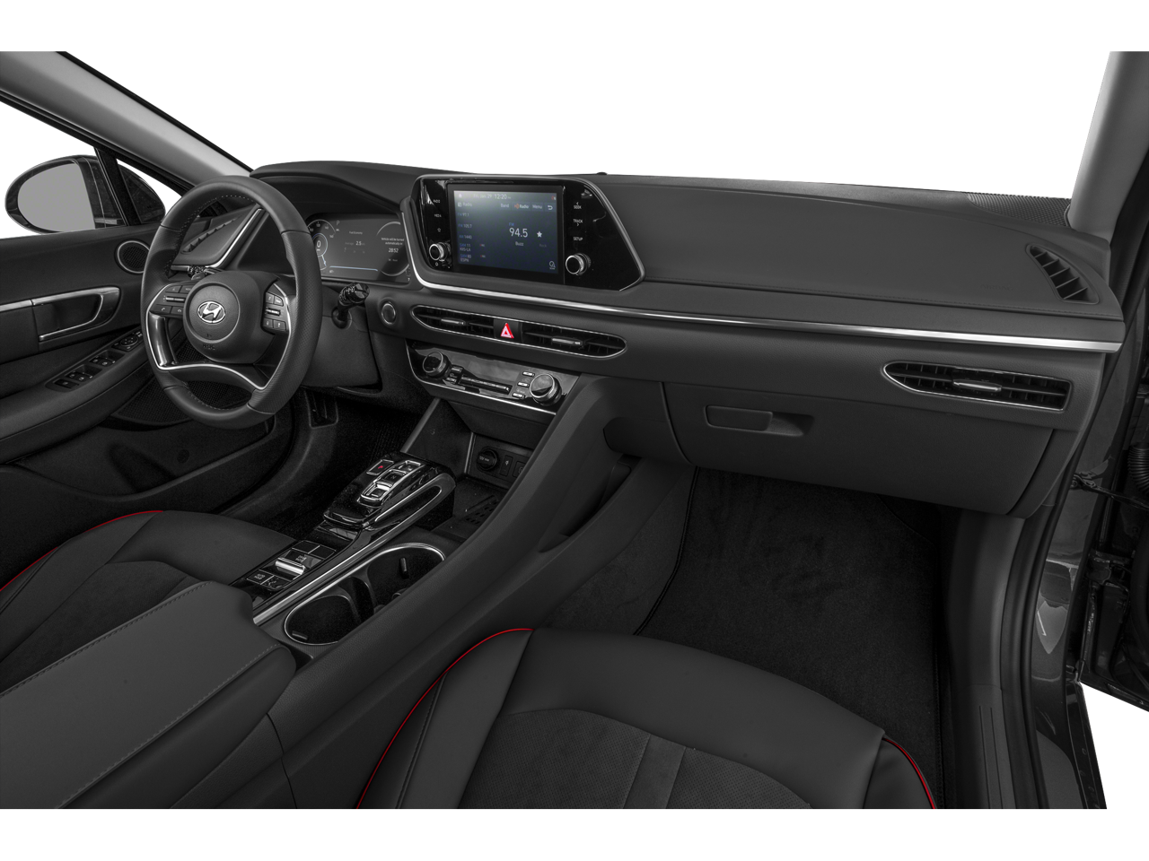 Blue Link Connected Care & Remote Package, Tech Package (Bose Premium Audio, Highway Drive Assist (HDA), LED Interior Lights, Option Group 06, Panoramic Sunroof, and Radio: AM/FM/HD/SiriusXM Display Audio w/Nav), Black Artificial Leather, 4-Wheel Disc Brakes, 6 Speakers, ABS brakes, Air Conditioning, Alloy wheels, AM/FM radio: SiriusXM, Apple CarPlay & Android Auto, Auto High-beam Headlights, Auto-dimming Rear-View mirror, Automatic temperature control, Brake assist, Bumpers: body-color, Cargo Net, Carpeted Floor Mats, Delay-off headlights, Dinamica Suede/Leatherette Seating Surfaces, Driver door bin, Driver vanity mirror, Dual front impact airbags, Dual front side impact airbags, Electronic Stability Control, Emergency communication system: Blue Link Connected Care (3-year subscription), Exterior Parking Camera Rear, Four wheel independent suspension, Front anti-roll bar, Front Bucket Seats, Front Center Armrest, Front dual zone A/C, Front reading lights, Fully automatic headlights, Garage door transmitter: HomeLink, Heated door mirrors, Heated Front Bucket Seats, Heated front seats, Illuminated entry, Knee airbag, Low tire pressure warning, Occupant sensing airbag, Outside temperature display, Overhead airbag, Overhead console, Panic alarm, Passenger door bin, Passenger vanity mirror, Power door mirrors, Power driver seat, Power steering, Power windows, Radio data system, Radio: AM/FM/MP3/HD/SiriusXM Display Audio, Rear anti-roll bar, Rear seat center armrest, Rear side impact airbag, Rear window defroster, Remote keyless entry, Reversible Cargo Tray, Security system, Speed control, Speed-sensing steering, Speed-Sensitive Wipers, Split folding rear seat, Steering wheel mounted audio controls, Tachometer, Telescoping steering wheel, Tilt steering wheel, Traction control, Trip computer, Turn signal indicator mirrors, Variably intermittent wipers, Wheels: 18 x 7.5J Sport Finish Aluminum Alloy, and Wireless Phone Charging.