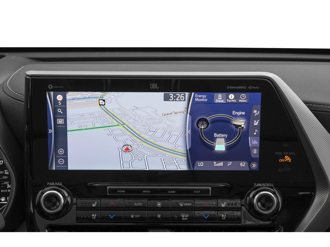 - Radio: JBL Premium Audio w/Navigation System -inc: Apple Car Play, Android Auto, Alexa in-car compatibility, Waze, SiriusXM, Wi-Fi connectivity through AT&T, Toyota Safety Connect w/a one-year trial subscription, service and remote connectivity, dynamic navigation, 12.3" screen and 1,200 watts of power playing through 11 speakers in 9 locations