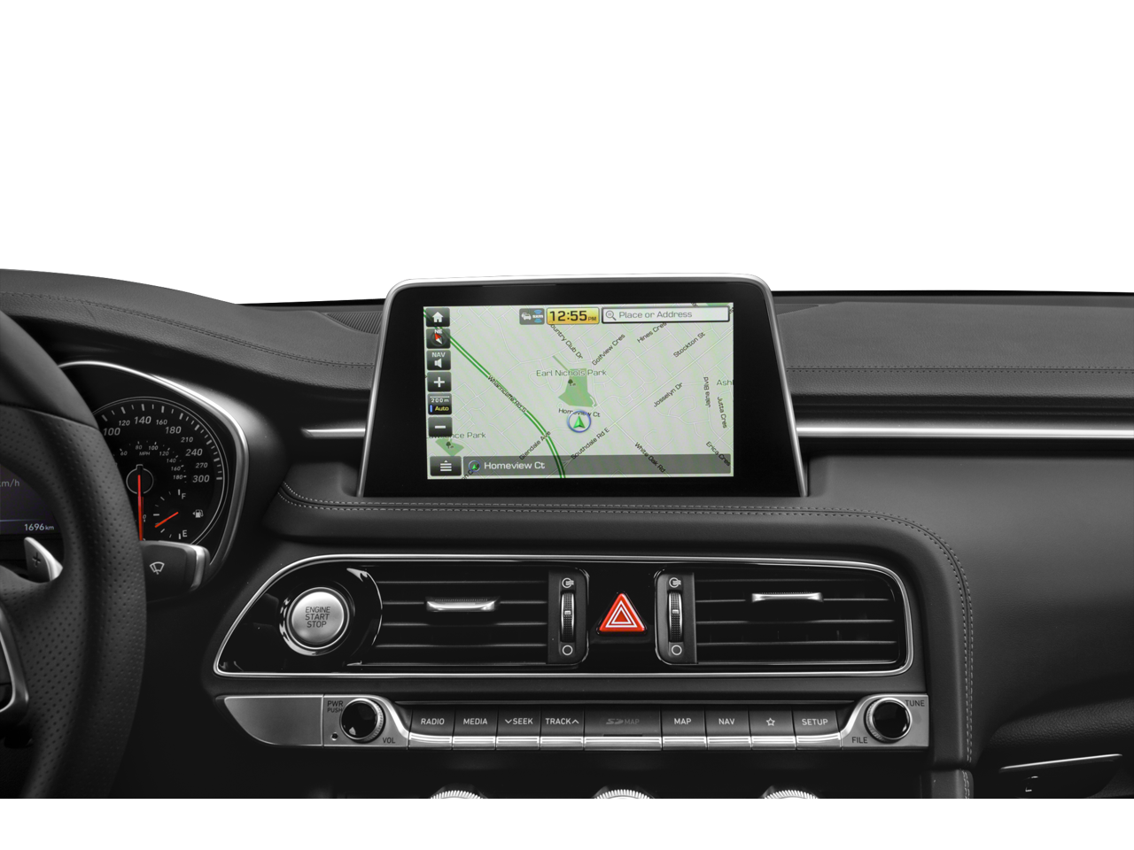- Radio: AM/FM/SiriusXM/HD Lexicon Audio System -inc: 11 channel digital external amplifier, 15 high efficiency speakers including 2 subwoofers, Quantum Logic surround sound, Clari-Fi music restoration, 8" 720p HD touchscreen display, wireless charging pad, speed-sensing auto volume control, HD Traffic, AVN 5.0 integrated navigation system, Android Auto and Apple CarPlay, 2 USB front: ( front console: data + charge / center console: charge only ), 1 USB rear (charge only), auxiliary input jack, Bluetooth® hands-free phone system and Genesis Connected Services Telematics System