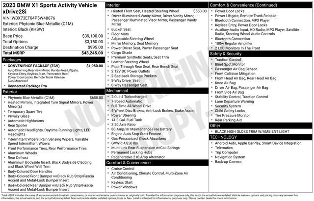 Whether you’re headed to work, a weekend adventure, or a night out on the town, this X1 delivers driving excitement and premium design in one versatile package.