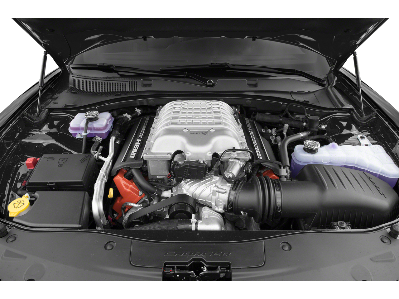 Hudson - Under 5 yr/ 75k Mi Certified, Black Leather, ABS brakes, Alloy wheels, Compass, Electronic Stability Control, Front dual zone A/C, Heated door mirrors, Heated Front Seats, Heated front seats, Heated rear seats, Illuminated entry, Low tire pressure warning, ParkView Rear Back-Up Camera, Passenger door bin, Remote keyless entry, Traction control, 1-Yr SiriusXM Guardian Trial, 2-Piece Shark Fin Antenna, 4-Wheel Disc Brakes, 4G LTE Wi-Fi Hot Spot, 6 Speakers, 8.4 Touchscreen Display, Air Conditioning, AM/FM radio: SiriusXM, Anti-whiplash front head restraints, Apple CarPlay, Apple CarPlay/Android Auto, Audio memory, Auto-dimming door mirrors, Auto-dimming Rear-View mirror, Automatic temperature control, Brake assist, Bumpers: body-color, Delay-off headlights, Driver door bin, Driver vanity mirror, Dual front impact airbags, Dual front side impact airbags, Emergency communication system: SiriusXM Guardian, For Details, Visit DriveUconnect.com, Four wheel independent suspension, Front anti-roll bar, Front Bucket Seats, Front Center Armrest, Front reading lights, Fully automatic headlights, Garage door transmitter: HomeLink, Google Android Auto, GPS Antenna Input, HD Radio, Heated steering wheel, Hellcat Logo Laguna Leather Seat, Integrated Center Stack Radio, Integrated Voice Command w/Bluetooth®, Knee airbag, Leather Shift Knob, Media Hub (2 USB, AUX), Memory seat, Occupant sensing airbag, Outside temperature display, Overhead airbag, Overhead console, Panic alarm, Passenger vanity mirror, Power door mirrors, Power driver seat, Power passenger seat, Power steering, Power windows, Radio: Uconnect 4C w/8.4 Display, Radio/Driver Seat/Mirrors Memory, Rear anti-roll bar, Rear reading lights, Rear window defroster, Security system, SiriusXM Satellite Radio, Speed control, Speed-Sensitive Wipers, Split folding rear seat, Spoiler, Sport steering wheel, Steering wheel mounted audio controls, Tachometer, Telescoping steering wheel, Tilt steering wheel, Trip computer, USB Host Flip, Variably intermittent wipers, Ventilated front seats, and Wheels: 20 x 11 Devil's Rim GranitE.