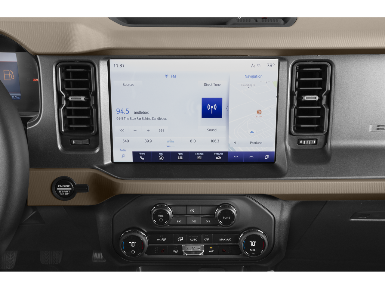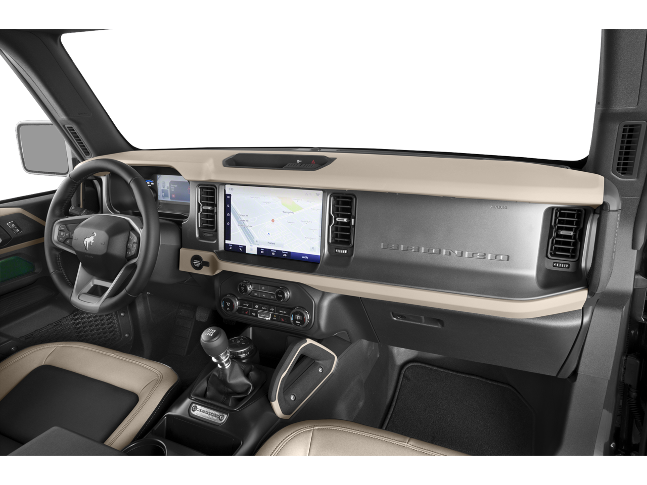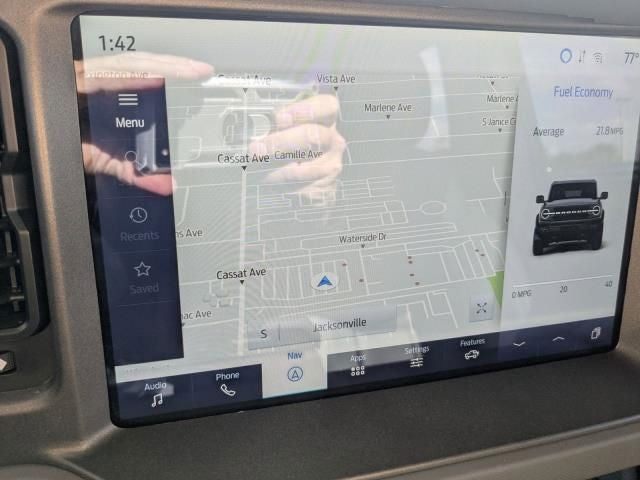 Inside, the Bronco Big Bend pampers you with premium touches like marine-grade vinyl seating, ambient footwell lighting, and a host of advanced technology. The SYNC 4 infotainment system with Connected Navigation keeps you connected and on course, while the Ford Co-Pilot360 suite of driver-assist technologies helps you navigate with confidence.